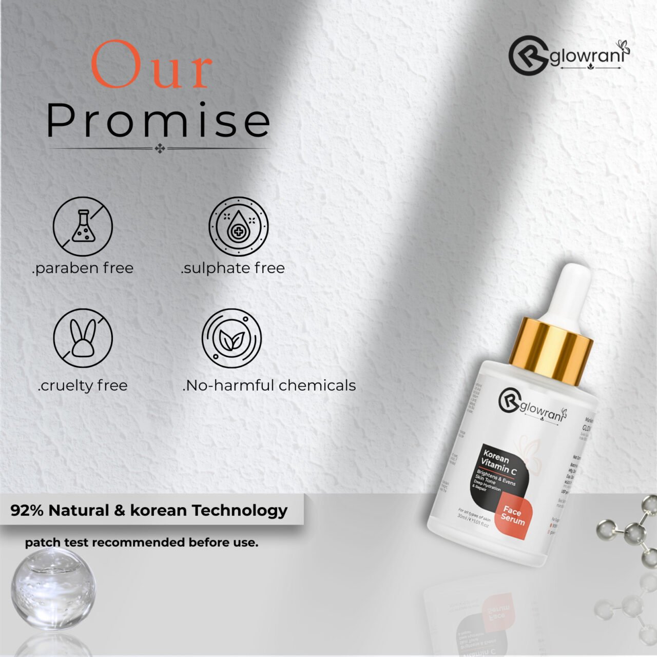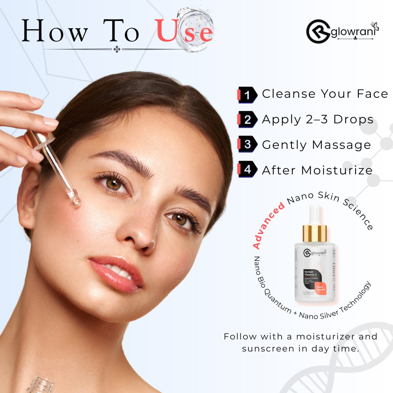 Advanced Korean Vitamin C Serum with Stable Vitamin C & Nano Technology that helps brighten skin, fade dark spots, reduce acne marks & deeply hydrate — visible glow improvement in 7–10 days.