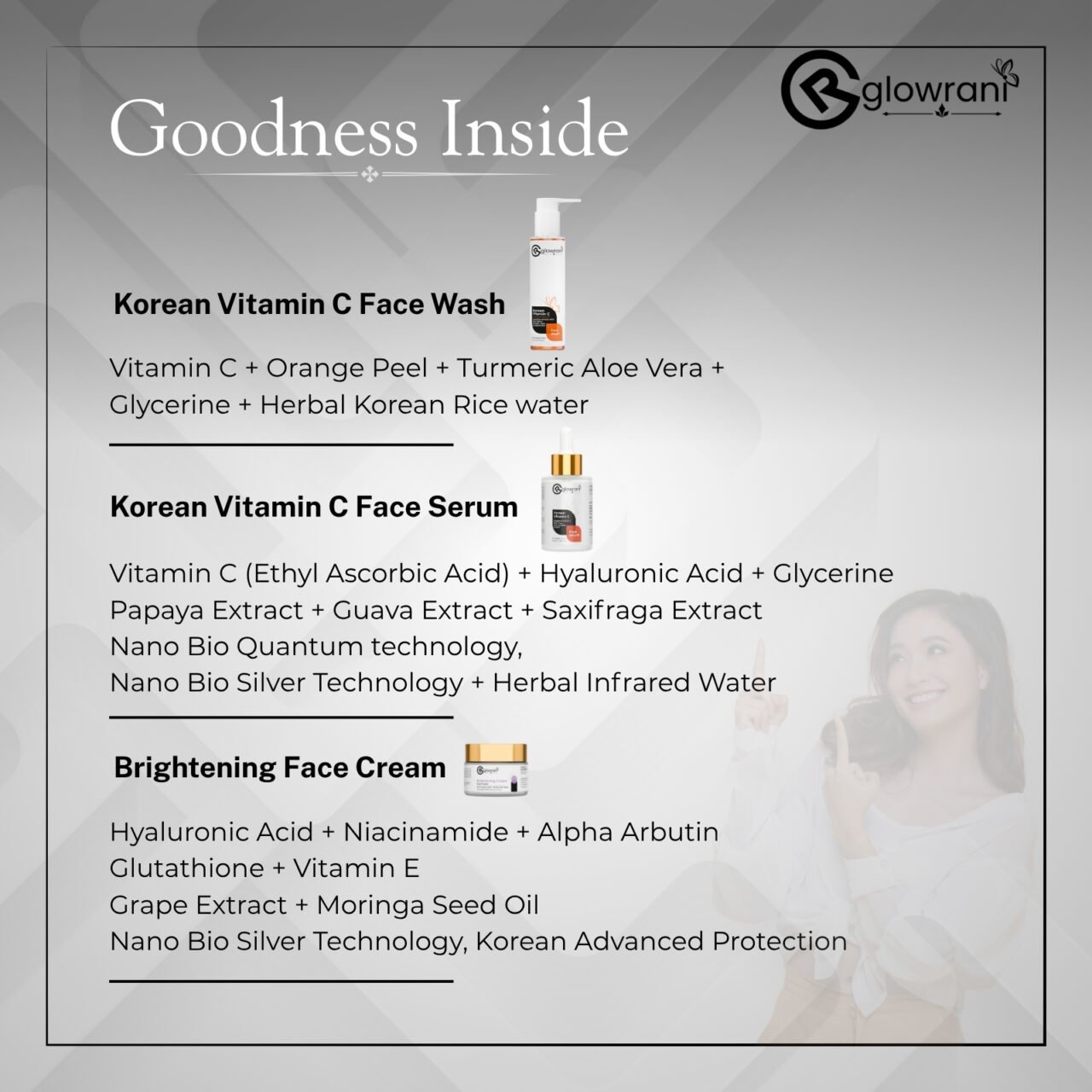 Love how fresh my skin feels after using the rice face wash. The serum has a nice citrusy feel, and the brightening cream makes my skin look radiant and soft.
